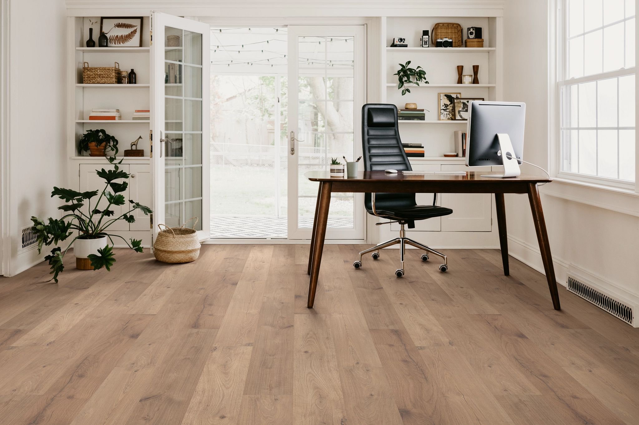 home office and desk on laminate floor